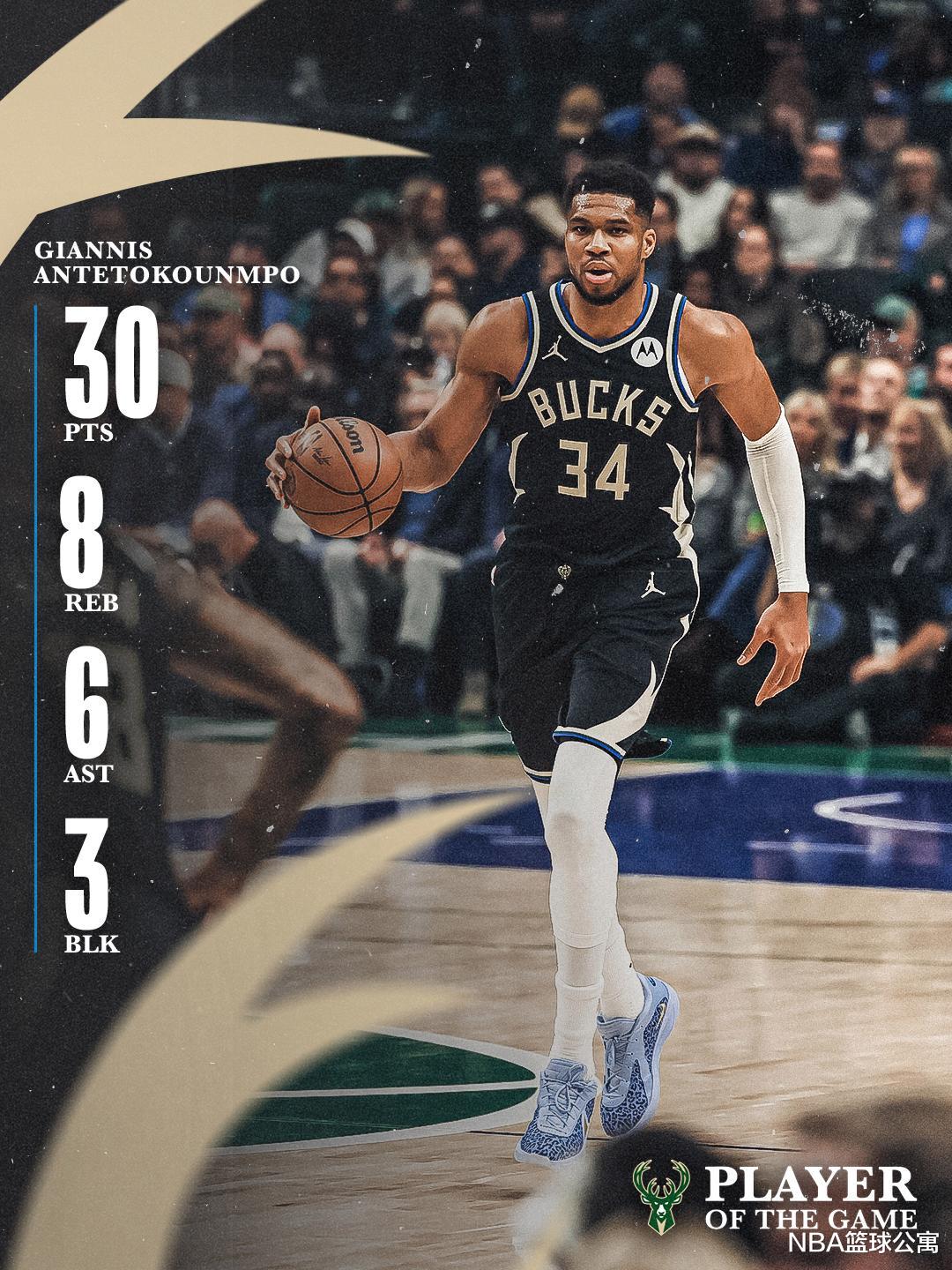 Antetokounmpo s 30+8+6 set the second miracle in NBA history, the Bucks reversed the Mavericks! Flagg set a record with 26+9, Kuzma broke out