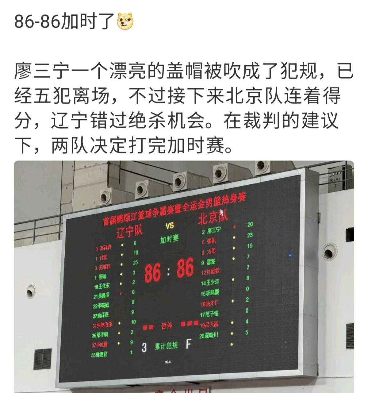 In the second round of the warm-up match for the National Games in Dandong, Liaoning, the Liaoning team played a passionate match against the Beijing team at home. After four quarters, the two sides were tied, with the score at that time being 86:86. After the two sides ended in a draw in an insignificant warm-up match, forget it and treat it as a friendly match. It would be great if everyone ended the game peacefully regardless of their superiority or inferiority! However, something unexpected happened. The Liaoning team, which was determined to prove itself, disagreed and insisted on playing overtime. The coaching staff of the Liaoning team also approached the referee and said that overtime must be played. Why does the Liaoning team have to do this? Do you need to prove yourself? Yes, they want to tell Liaoning fans that it doesn't matter who leaves the team, so they must play a dispensable warm-up match as the finals. To be honest, not to mention in the CBA league, even in the NBA league, it is very rare for a team to insist on playing overtime after a warm-up match ends in a tie! It seems that since the advent of the CBA League, the Liaoning team and the Beijing team are the first teams to draw in a warm-up match and then play overtime. Beijing team head coach Xu Limin was originally unwilling to play overtime, but the Liaoning team was unwilling. The referee on duty had no choice but to find Beijing team head coach Xu Limin to negotiate before playing overtime. Well-known sports reporter Detective Zhao posted on his blog: "At the referee's suggestion, the two teams decided to finish the overtime match." Think about it, if the Liaoning team hadn't insisted on the request, would the referee have found trouble? However, the well-known sports reporter Detective Zhao was embarrassed to say that he could only say "at the referee's suggestion." I have to say that this referee is also a nosy referee. Forget it, what the well-known reporter Zhao couldn't understand was that the referee turned a good shot by Liao Sanning into a three-point foul, giving the Liaoning team three free throw opportunities in vain. Well-known reporter Zhao Inspector posted on his blog: "Liao Sanning's beautiful block was called a foul, and he has already left the field for five fouls. However, the Beijing team scored consecutively, and Liaoning missed the chance to win." Inspector Zhao said: "It is indeed a good shot, but this is just one of the misjudgments of the whole audience." Inspector Zhao did not dare to offend the Liaoning fans, so he had to add: "The Liaoning team also has it, It makes Xiao Gao angry." Even though Inspector Zhao tried to please the Liaoning fans in this way, he still couldn't stop the Liaoning fans from slandering him. The Liaoning fans commented below: "Liao Sanning committed a 3-point foul. There is no doubt about it." Inspector Zhao had no choice but to send them the screenshot. Despite this, Detective Zhao could not escape the attack of Liaoning fans. A fan commented: "You are so stupid! It's so easy to commit a foul." The only people who watch a warm-up match are more important than the finals are the Liaoning team and Liaoning fans. Is this necessary? If the referee did not influence this game and did not favor the Liaoning team, the Liaoning team would definitely not be able to win this game. Therefore, the referee on duty must send off Liao Sanning first. Because in this game, Liao Sanning was in such good shape that the Liaoning team had almost nothing to do with him. Surrounded by the Liaoning team's players, he still had everything he wanted to score under the Liaoning team's basket, as if he was in a no-man's land. The referee considered that the Liaoning team would not be able to win the game if Liao Sanning was not sent off. After Liao Sanning was sent off by the referee, he defeated the Beijing team with a slight advantage of 2 points. For such a Liaoning team and such Liaoning fans, there is really nothing we can do! After the game, Beijing Radio and Television sports reporter Yong Fangfang posted on his blog: "The two young players really stood out. Director Xu made them play the entire overtime." The two young players are Lu Tianfu and Tong Guanlin. Head coach Xu Limin didn't take this warm-up match against the Liaoning team seriously at all. It was mainly to train young players. Otherwise, the unknown pawns Tong Guanlin and Lu Tianfu would not be allowed to play in the game, let alone Fan Ziming. However, Tong Guanlin and Lu Tianfu, who were ordered at the critical moment, became the most critical surprise players of the Beijing team. Especially Lu Tianfu scored 5 points, which was better than the 2 points of Yan Shouqi of the Liaoning team, better than the 1 point of Han Dejun of the Liaoning team, and better than the 3 points of the former coach of the Liaoning team. Tong Guanlin played a very key role in several defenses of the Liaoning team, and made excellent defensive counterattacks many times. The 5-point goal he scored was exactly the most critical 5 points for the Beijing team. It was Lu Tianfu who finally scored the crucial tie goal with a throw from the basket. If it weren't for several crucial referee decisions, the Beijing team would have very likely won the away game. What Xu Limin, the head coach of the Beijing team, did not expect was that the Liaoning team was so serious. It insisted on playing overtime, determined a winner, and determined who was stronger and who was weaker! This feels so boring.