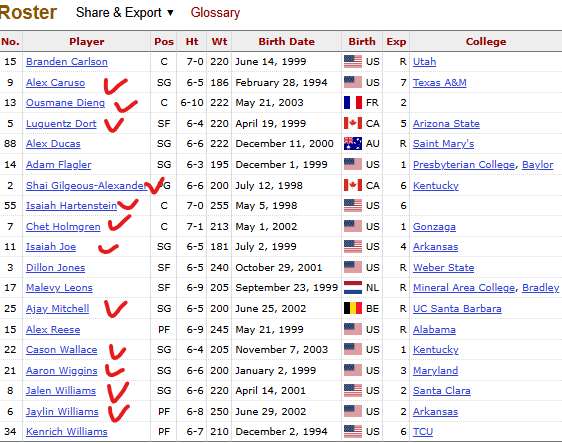 Last season’s record—No. 1 in the regular season, championship team. 68 wins and 14 losses in the regular season. The Grizzlies were eliminated 4-0 in the first round of the playoffs. The Nuggets were eliminated 4-3 in the second round of the playoffs. The Timberwolves were eliminated 4-1 in the Western Conference Finals of the playoffs. In the finals, they eliminated the Pacers 4-3 and won the championship. ESPN Top 100 Players Shai Gilgeous-Alexander (No. 2) Chet Holmgren (No. 24) Jalen Williams (No. 11) Alex Caruso (No. 53) Isaiah Hartenstein (No. 56) Lüganz Dort (No. 64) Offseason operation-give Alexander, Jiewei, and Jiewei a maximum salary The Thunder regards Alexander, Jiewei, and Jiewei as the core of the team in the next ten years. This summer, the Thunder spent a total of US$822 million to renew the contracts of three core players. (1) 27-year-old Alexander signed a four-year, $285 million contract extension In the 2024-25 season, Alexander won the regular season MVP, scoring champion, Western Conference Finals MVP, and Finals MVP. Alexander’s contract amounts over the years are as follows. 2027-28 season: $63,525,000 2028-29 season: $68,607,000 2029-30 season: $73,689,000 2030-31 season: $78,771,000 (player option) Total amount: $285 million (US$285,000,000) Alexander's salary for the 2030-31 season reaches US$78 million, with an average salary of nearly US$1 million per game. (2) 23-year-old Chet Holmgren re-signed with a maximum salary of US$250 million in 5 years After missing three months in the 2024-25 season, Holmgren returned in February and helped the Thunder win the NBA championship. Holmgren played 23 games in the playoffs, averaging 29.8 minutes per game, scoring 15.2 points, 8.7 rebounds, 1 assist, and 1.9 blocks, with a three-point shooting percentage of 46.2%+29.7%+78.4%. Chet's average plus-minus per game in the playoffs is +7.39, which is higher than Michael Jordan's +7.35, ranking first in history. Throughout his career, injuries have affected Chet's development momentum (he was reimbursed for his rookie season and only played 32 games in his third year). A healthy Chet is an All-Star player. He is an offensive and defensive player with a very high basketball IQ and skills as an outside player. He is a strong contender for the best defensive player. He has an innate sense of blocking shots. Although they just won the NBA championship, Thunder management believes that Holmgren's peak has not yet arrived. The first-year salary of Chet's new contract accounts for 25% of the Thunder's total salary cap that season. Chet's new contract is in line with the team's salary structure of rookie maximum salary renewal, ensuring the operational flexibility of the Thunder's salary space. This contract is more like a big gamble by the Thunder management, with absolute confidence in Holmgren's potential and resilience. (3) Five-year, $287 million signing of 24-year-old Jaylen Williams In the playoffs this season, Jaywe averaged 34.6 minutes per game, scoring 21.4 points, 5.5 rebounds, 4.8 assists, 1.4 steals and 0.4 blocks. Jervie was the only two players to be selected to the All-Star, All-NBA and All-Defensive teams last season. The man who scored 40 points in the finals In G5 of the finals, Jaywe played 35 minutes and made 14 of 25 shots, including 3 of 5 three-pointers and 9 of 12 free throws. He scored 40 points, 6 rebounds, 4 assists and 1 steal. (4) 3-year, $24 million contract extension for Jaylin Williams The third year of Jaylin Williams’ contract will be decided by the team whether to execute it. Jaylin Williams played 47 games in the regular season, averaging 5.9 points, 5.6 rebounds and 2.6 assists per game; in the playoffs, he averaged 2.6 points, 1.9 rebounds and 1.0 assists per game. (5) Three-year, $8.7 million signing with Ajay Mitchell In the 24-25 season, Mitchell averaged 16.6 minutes per game, 6.5 points, 1.9 rebounds and 1.8 assists, shooting 49.5% from the field and 38.3% from the three-point range. The contract decreases year by year. The first-year contract is fully guaranteed, and only $1.5 million is guaranteed in the second year. The final season contract comes with team options. (Six) The No. 15 pick selected power forward Thomas Sorber, who was reimbursed for the season due to injury. Thomas Sorber was born in Trenton, New Jersey. He is 2.09 meters tall, weighs 119.2 kilograms, and has a wingspan of 2.28 meters. He serves as a power forward/center and comes from Georgetown University. Thomas Sorbo played for the NCAA's Georgetown University this season, averaging 31.3 minutes per game, 14.5 points, 8.5 rebounds and 2.4 assists, shooting 53.2% from the field and 16.2% from the three-point range. On September 5, Sauber suffered a torn anterior cruciate ligament in his right knee during training and will miss all games in the new season. Offseason operation analysis The Thunder's offseason operations are very simple. Just one idea: retain the core lineup of the championship and continue to rush for the championship.. The three core and main rotation players have all stayed on the team. There have been no major changes to the team's lineup. The championship lineup is intact and no championship heroes have been lost. The era of competition among heroes! After you sing, I will appear! Seven teams have won the championship in seven years The Thunder in the 2024-25 season is the seventh team to win the championship in seven years. The seven teams are: 2019 Raptors, 2020 Lakers, 2021 Bucks, 2022 Warriors, 2023 Nuggets, 2024 Celtics, and 2025 Thunder. Advantages (1) MVP Alexander Alexander is at the peak of his career. Some of his achievements are already comparable to Jordan's. In NBA history, there are only two guards who have averaged 30+ points per game for three consecutive seasons and shot 50% from the field, namely Alexander and Jordan. The other guards have never even achieved this achievement for two consecutive seasons. With as much pres