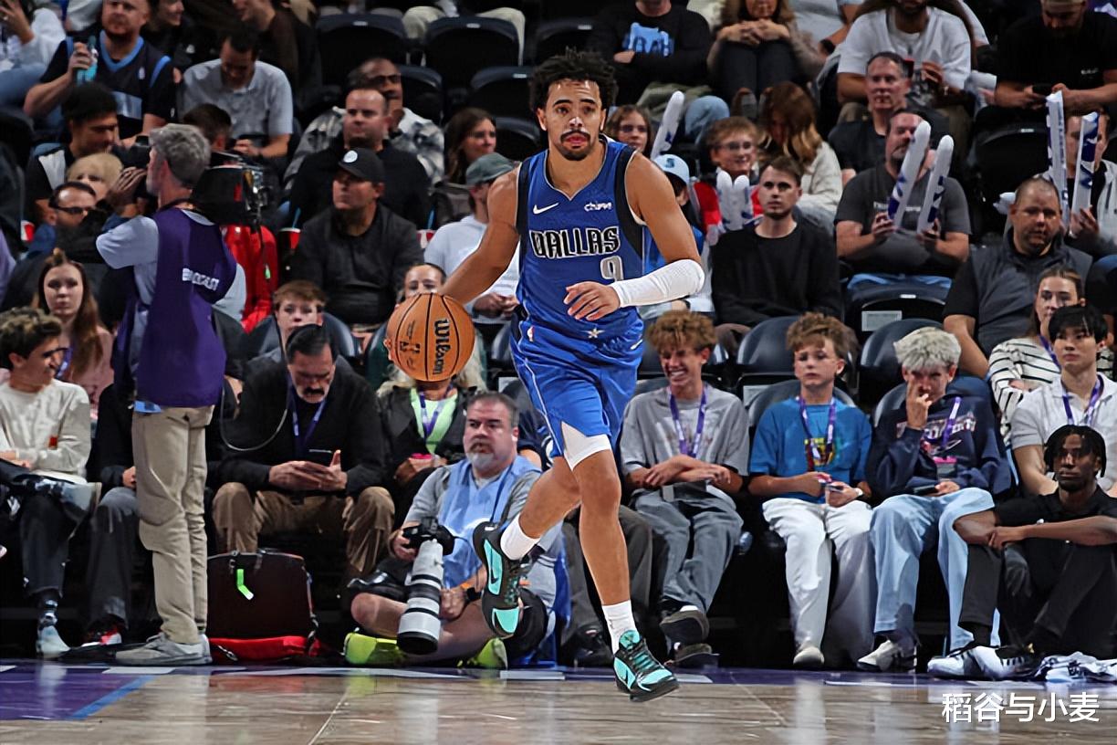 In a previous NBA preseason game, the Dallas Mavericks defeated the Utah Jazz at home 114-101. After this game, the Mavericks' record in the preseason improved to 2 wins and 1 loss, while the Jazz suffered a three-game losing streak during the preseason and currently have a record of 0 wins and 3 losses. In this game, the performance of the Mavericks' substitute backcourt rookie Ryan Nembhard was impressive. Nembhard played 26 minutes and 24 seconds, making 2 of 6 shots, 1 of 4 from beyond the three-point line, and 1 of 2 free throws. He scored 6 points, 5 rebounds, 12 assists, and 1 steal. He also had 1 turnover and 4 fouls, with a plus-minus of +14. Although Nembhard had a mediocre touch on the offensive end and did not score more points, his performance in passing and organizing offense was phenomenal. He constantly sent passes to his teammates, and the team's offense seemed orderly under his organization. In addition, Nembhard's performance on the defensive end is quite satisfactory, and he can also play a certain role. Overall, Nembhard has displayed his own characteristics on both offense and defense. The team's situation is also very good when he is on the court. His series of outstanding performances are also an important factor in the team's ability to defeat opponents. Nemhard was born in March 2003. He is 22 years old and was the undrafted pick in this year's NBA draft. However, the Mavericks offered him a two-way contract after the draft, and they still highly recognized his abilities. According to the data from the previous joint trial physical test session, Nembhard's barefoot height is 180.3cm, his wingspan is 188.6cm, his standing reach is 238.8cm, and his weight is 79.7kg. In the NCAA last season, Nembhard played 35 times on behalf of Gonzaga University, averaging 35.1 minutes per game. He averaged 10.5 points, 3 rebounds, 9.8 assists, 1.7 steals and 0.1 blocks per game. He also had 2.5 turnovers and 1.6 fouls. He shot 44.6% from the field, 40.4% from the three-point range, and 77% from the free throw line. In the previous NBA Summer League, Nembhard played a total of 3 times, averaging 29.5 minutes per game, averaging 11.3 points, 2.7 rebounds, 6.7 assists and 0.7 steals per game, as well as 3.7 turnovers and 3.7 fouls. He shot 40.6% from the field, 33.3% from the three-point range, and 83.3% from the free throw line. So far in the preseason, Nembhard has averaged 17.3 minutes per game in the first three games, averaging 5 points, 3 rebounds, 5.3 assists, 1 steal, 0.7 blocks, 0.7 turnovers and 1.7 fouls. He shot 40% from the field, 33.3% from the three-point range, and 50% from the free throw line. Nembhard didn't play too much in the previous two games, and his performance couldn't be considered particularly outstanding. He got more playing time and ball rights in this game, and his performance also improved significantly under this situation. Although he is only an undrafted player, does Nembhard have a chance to establish himself in the Mavericks who lack a point guard?