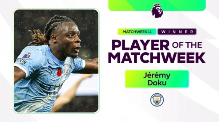 1 goal + 7 successful dribbles + 11 wins in duels Official: Doku was elected as the best player in this round of Premier League