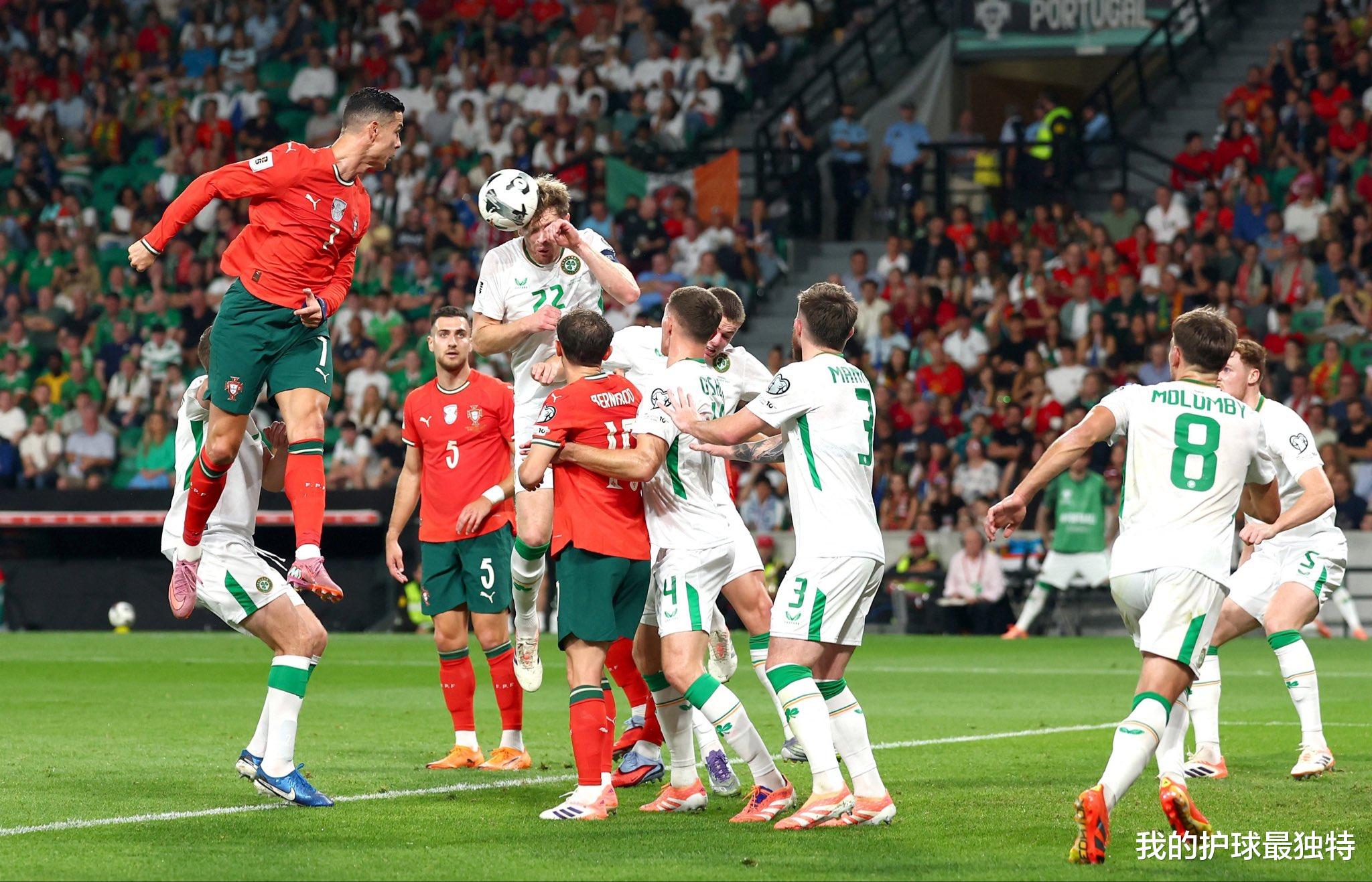 In the early morning of October 12, Group F of the European World Cup preliminaries staged a focus match, with Portugal playing at home against Ireland. In this campaign, Cristiano Ronaldo hit the post from a long distance and missed a penalty kick. Seat B wasted an empty goal opportunity. Neves scored a header in stoppage time. Portugal defeated its opponent 1-0 without any danger. Portugal is ranked 5th in the latest FIFA rankings. It has won the first two games in the world preliminaries and currently ranks first. Ireland is ranked 61st in FIFA. It has one draw and one loss in the two world preliminaries, temporarily ranking last. Portugal continues to use the 4231 formation in this game, with Ronaldo as the center, B Fee, B seat, Neto, Vitinha and Ruben Neves in the midfield, Mendes as the left back, Conceicao and Leo sitting on the bench. In the 17th minute, Ronaldo shot hard from outside the penalty area, but Kelleher was beyond his reach. The ball hit the post and bounced out. Facing the empty goal in seat B, his supplementary shot missed! In the 30th minute, Neves made a pass from the right, and Ronaldo grabbed the point in the middle. Unfortunately, his header missed and the ball slipped past the goal. In the 40th minute, B Fei passed a corner kick. Inacio headed forward and hit the goal. Kelleher responded with a brilliant save, but Portugal still failed to break the deadlock. In stoppage time, Neto broke through at high speed from the right and made a pass. He shot from close range in front of the B seat, but was blocked again by his opponent. In the first half, Portugal had the upper hand and failed to score, taking 12 shots without any success. Changing sides and fighting again, Portugal continues to suppress its opponents. In the 53rd minute, Fee B made a pass from the front of the penalty area. Ronaldo stopped the ball and volleyed, but it missed the post. In the 60th minute, Seat B knocked back in an inverted triangle, Fee B cleverly missed the ball, Vitinha took a long shot, and Kelleher flew to save the ball. In the 70th minute, Trincang passed a straight pass from the right, Semedo made a pass, and Ronaldo outflanked and fired, and missed the ball again. In the 73rd minute, Trincon shot hard in the penalty area, and O'Shea committed a handball foul. In the 75th minute, Ronaldo chose to hit the center, and Kelleher stretched his legs to block the ball. On this night, Haaland, Ferran Torres, Retegui and Ronaldo all missed penalty kicks! In the 91st minute, Portugal finally broke the deadlock: Trincao cut in from the right and made a 45° pass. Neves scored with a header before Kelleher, 1-0! In the 92nd minute, Leo ran long distance and shot from a small angle on the left side of the penalty area, but missed the right post. Portugal failed to seal the victory. In the end, Portugal defeated Ireland 1-0, scoring all 3 points without any danger, ushering in 3 consecutive wins in the world preliminaries, and continuing to remain at the top of the list. In addition, Portugal has won 6 consecutive victories in all competitions. The only flaw is that Ronaldo failed to score, and the record of scoring goals in 5 consecutive games for the national team came to an abrupt end.