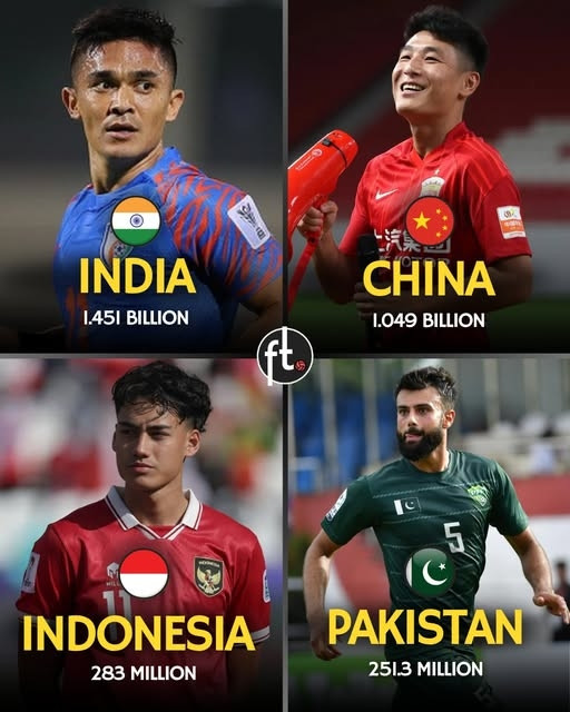 Even 3.8 billion people can’t handle football! TA: Among the top 10 most populous countries, at least 7 have missed the World Cup