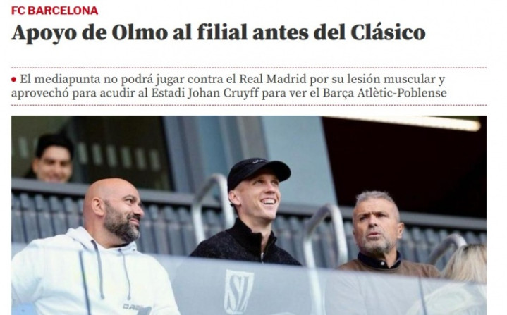 Injured soleus muscle and missed El Clasico! Olmo went to watch the game of Barcelona B team
