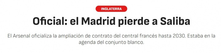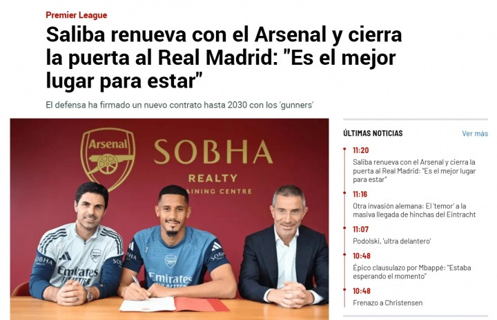 September 30th Arsenal officially renewed its contract with the team's central defender Saliba, and many parties confirmed their new contract until 2030. Real Madrid-based Spanish media Le Marca and Le As reported on the contract renewal. Maca wrote a report article under the title "Saliba renewed contract with Arsenal and closed the door to join Real Madrid", and stated that since Saliba renewed contract until 2030, if you want to see him play for Real Madrid, you may have to wait for a while. The title of "As" is "Official: Real Madrid missed Saliba, and Arsenal officially announced the renewal of its contract with the French central defender until 2030. The player was originally in Real Madrid's signing plan" The original contract between Saliba and Arsenal expires in 2027. Before this renewal, Spanish media widely reported that Real Madrid intends to sign Saliba.