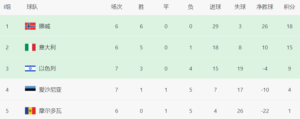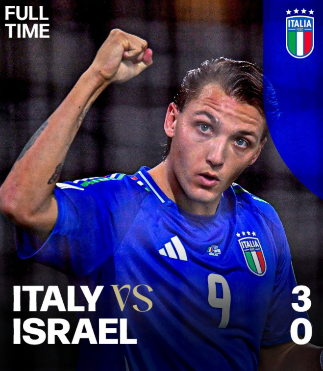 A group match in the first stage of the European World Cup qualifiers begins. Italy, ranked 10th in the world, faces Israel at home. Italy achieved 4 wins and 1 loss in its first five group matches. This result ranked Italy second in the group, suppressed by Norway, which had won 6 games. For Italy, it is not easy to squeeze out Norway. After all, Norway is in perfect condition. Now Italy faces Israel. Italy narrowly won 5-4 in the first round. This time, Italy, which had home field advantage, won a great victory, sweeping Israel 3-0 to complete a double defeat! In this game, Italy has a 352 formation. Raspadori and Retegui formed a forward double. Cambiasso, Barrera, Locatelli, Tonali and Dimarco partnered in the midfield 5. The back three of Di Lorenzo, Gianluca Mancini and Calafiore started. Donnarumma serves as the starting goalkeeper. The Italian starting lineup is worth a total of 412 million euros. The total value of Israel's starting lineup is 61.05 million euros. Not long after the game started, Retegui got a chance in the middle of the penalty area, but unfortunately his shot missed. Subsequently, Cambiaso forced an inward shot, but it also missed. 8 minutes later, Gloch took a shot from the middle and missed. In the 27th minute, Israel launched a sharp counterattack. Solomon fired an angry shot from the right side of the penalty area, and goalkeeper Donnarumma saved the ball to resolve the danger. Near the end of the half, Retegui created a penalty kick opportunity, and he personally took the penalty to help Italy take the lead. At halftime, Italy 1-0 Israel. In the second half, the team changed sides and fought again. Italy took the lead in making substitution adjustments. Pio Esposito came on as a substitute and replaced Raspadori. Eight minutes later, Barrera volleyed in the penalty area and kicked away. Subsequently, Groch got another good chance, this time his shot was resolved by the goalkeeper. In the 65th minute, Cambiaso scored, but it was disallowed for offside. In the 74th minute, Italy scored again! It was Retegui's goal again, his shot hit the dead center! In stoppage time, Gianluca Mancini scored with a header. In the end, Italy defeated Israel 3-0. The 26-year-old forward Retegui was undoubtedly the best player in the game. He took 5 shots, scored 2 goals, sent 2 key passes, and made 3 steals. Italy achieved a 5-game winning streak, with 5 wins and 1 loss in 6 group matches, scoring 15 points and ranking second. Norway, the group leader, won all 6 games and scored 18 points, 3 points more than Italy.