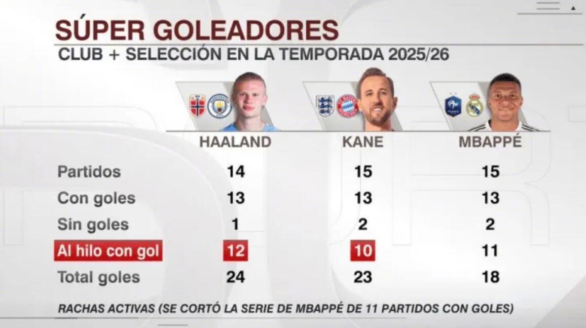 The third round of the Champions League group stage has ended. In this round, the two great forwards in European football, Haaland and Kane, scored goals one after another. They also helped their respective teams take away 3 points and continue to be at the top of the standings. Mbappe's performance in this round was also very good, but he ran into the Juventus goalkeeper Di Gregorio who behaved like a cheat, and his record of scoring in 11 consecutive games in all competitions came to an end. After entering the 25-26 season, the three top shooters Kane, Harland and Mbappe collectively ushered in a big explosion. According to ESPN's latest statistics, Mbappe has played a total of 15 games in the club and national team, contributing 18 goals and 4 assists. Kane's national team and club appearances are also 15 games. His data is 23 goals and 3 assists. One person was directly involved in 26 goals. But Kane, who is so efficient, can still only rank second, because Haaland's performance is even more incredible. He contributed 24 goals and 3 assists in 14 games, and scored 27 goals by himself! The most outstanding performer at the club level is undoubtedly the English striker Kane. So far this season, Kane has played a total of 12 games on behalf of Bayern. In these 12 games, he scored a crazy 20 goals and sent 3 assists. He participated in 23 goals alone, averaging almost 2 goals per game! Under Kane's leadership, Bayern has won 12 consecutive victories in the new season. They are also the only team in the five major leagues to maintain a complete victory. It seems that there is no suspense about who will win the Bundesliga championship this season. The only highlight is that Bayern can win a few rounds in advance. In the national team, Haaland is completely unstoppable. In the new season, he played a total of 3 games for the Norwegian team. In 3 games, he scored 9 goals and provided 2 assists. He scored 11 goals by himself. With Haaland's incredible performance, the Norwegian team was also able to beat the top seed Italy in the world preliminaries and temporarily ranked first. I believe that fans who have watched Haaland's games know that the Norwegian striker has undergone a comprehensive evolution this season. Heading, which has been criticized many times in the past, is no longer his shortcoming. Today, Haaland can be regarded as the most perfect center template. It is only a matter of time before more scoring records are broken by him. Although Mbappe's club performance is not as good as Kane's and the national team's performance is not as good as Haaland's, he is more balanced. In the new season, he played 15 games on behalf of Real Madrid and the French team, contributing 18 goals and 4 assists. His offensive efficiency reached a career high. In addition to scoring goals himself, Mbappe also does an excellent job in teamwork. According to foreign media statistics, in the list of opportunities created in the Champions League this season, Mbappe ranks first with 16 times. If it weren't for his teammates' poor ability to seize opportunities, perhaps the French star's name would also be at the top of the assist list. It is no exaggeration to say that the competition for the Golden Globe Award this season will be a scene of gods fighting. I am afraid that the excitement will not be inferior to the previous Melo battle!