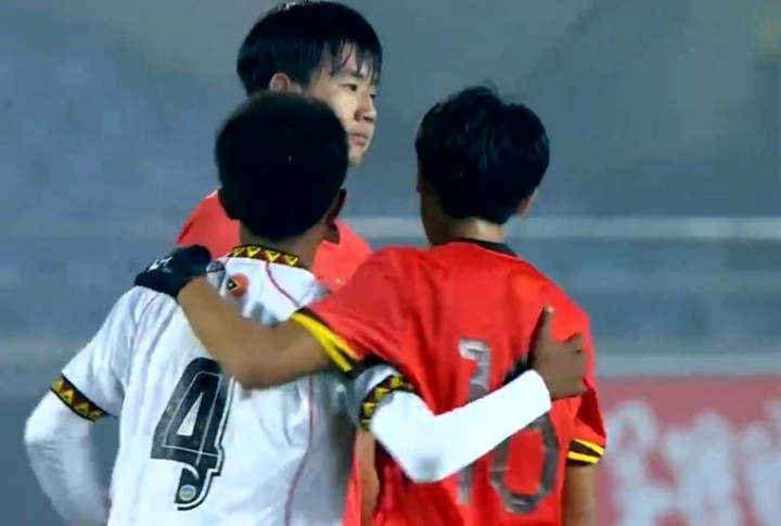 DD-Sport > Football > They are still very friendly off the court! The U16 national football players took the initiative to come forward to comfort and pull up their opponents.